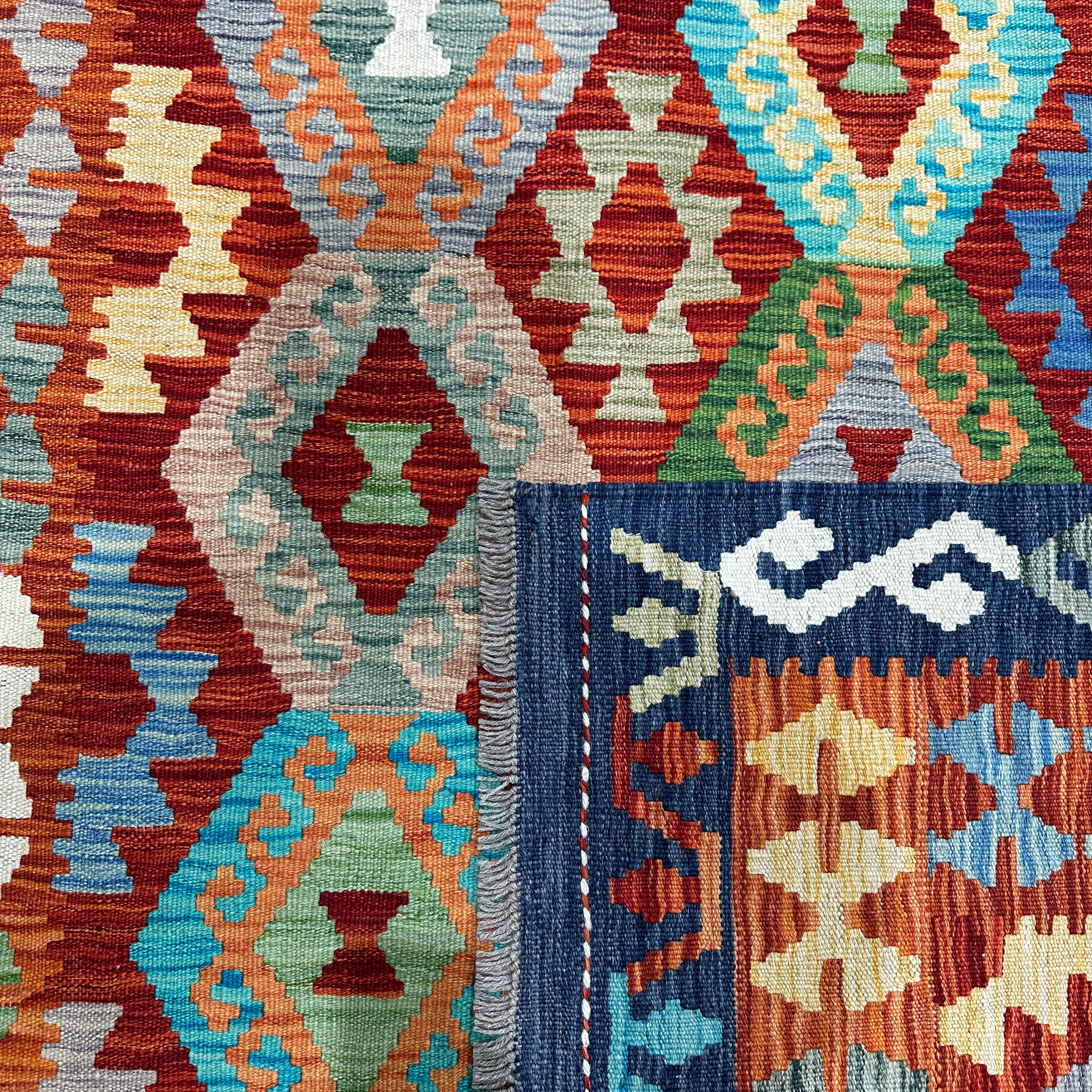 The Maimana Kilim is a handmade Afghan kilim rug, woven using traditional techniques and natural fibers. Featuring bold geometric patterns and authentic craftsmanship, each piece is unique and full of character.