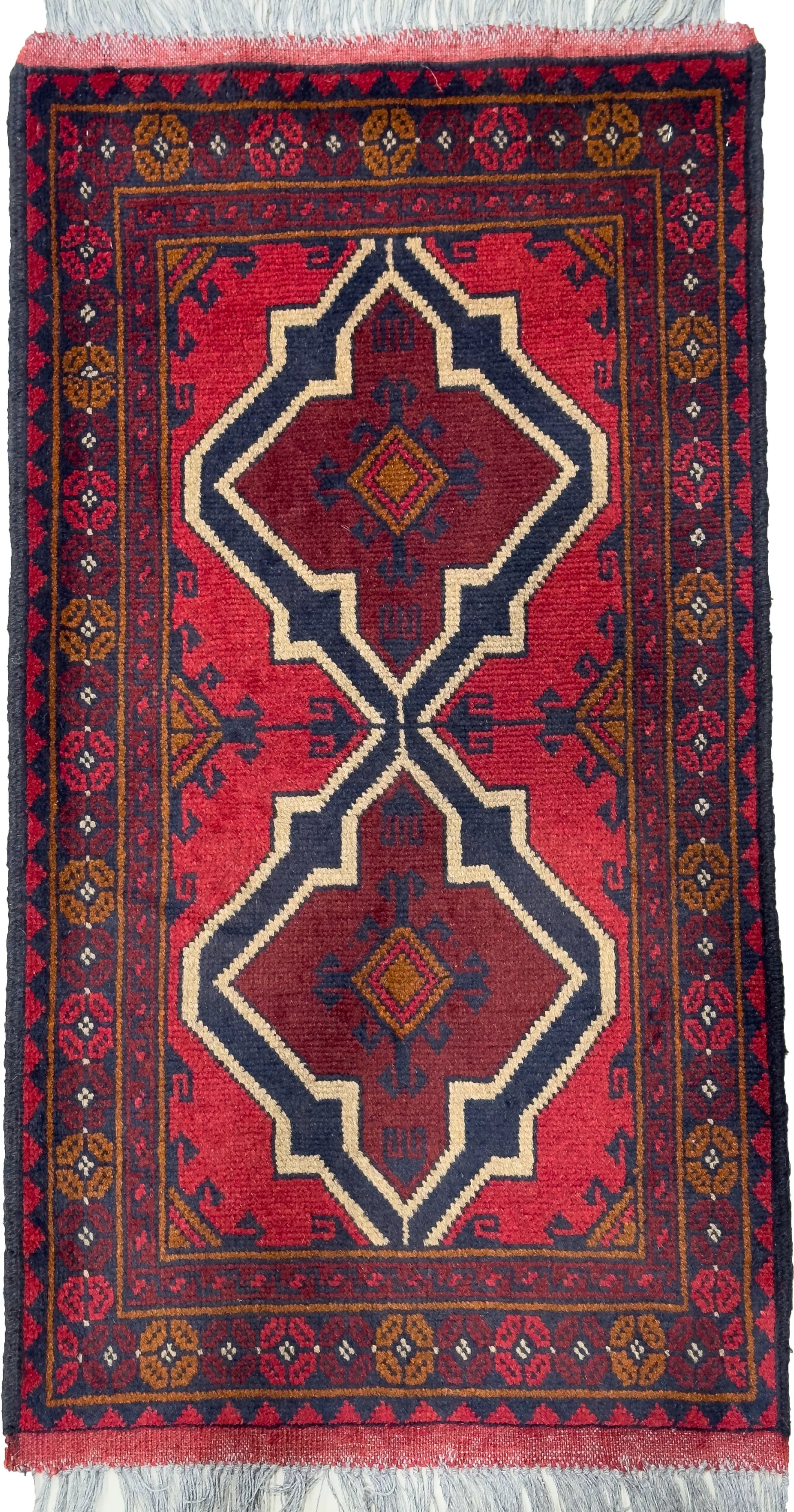 Handmade Afghan Khal Mohammadi Carpet, KM5006, Red - 50 x 100 cm