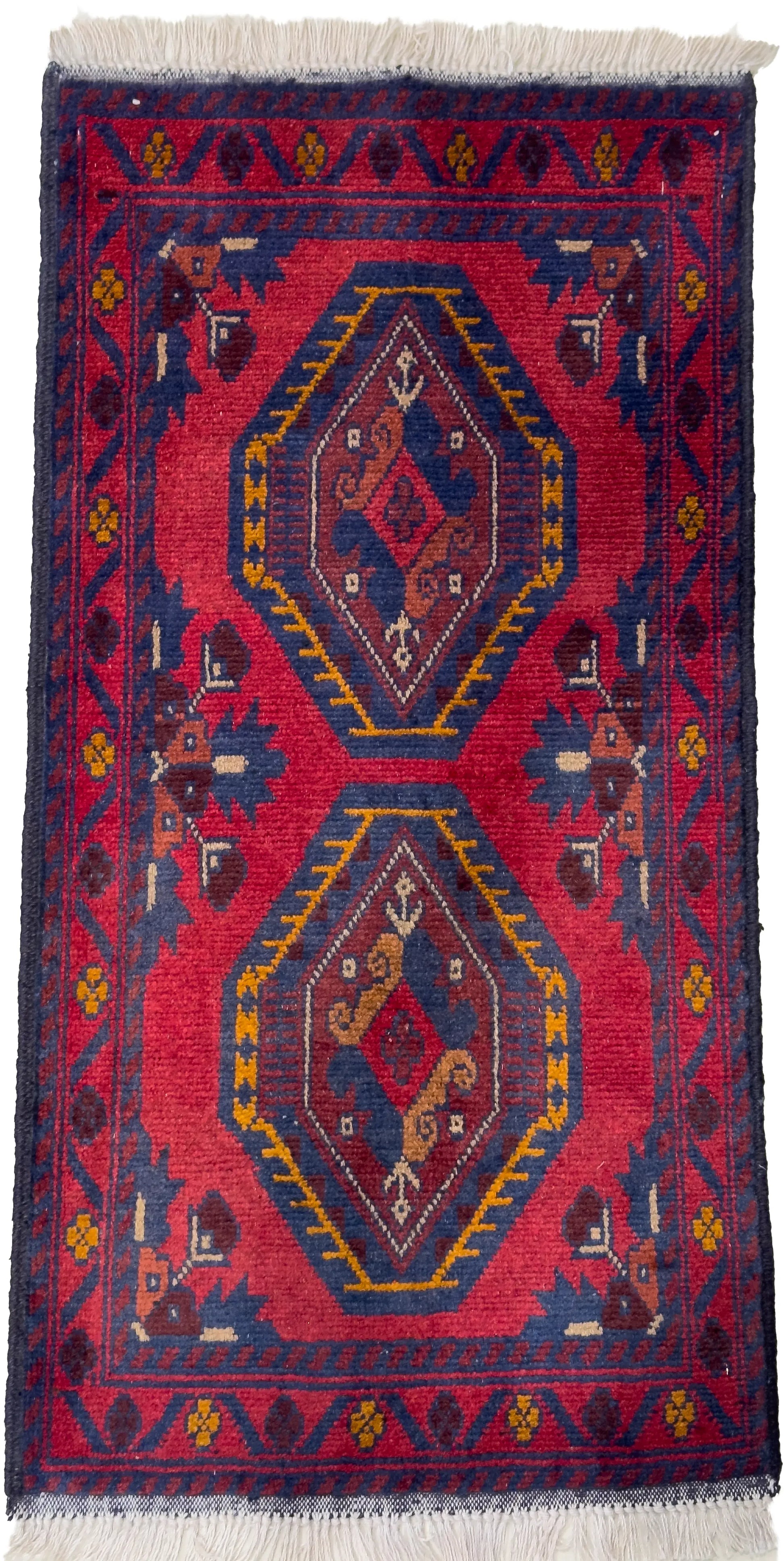 Handmade Afghan Khal Mohammadi Carpet, KM5010, Red - 50 x 100 cm