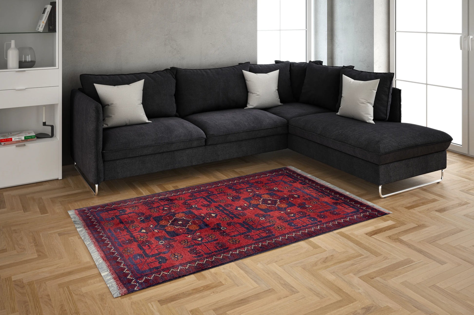 Handmade Afghan Khal Mohammadi Carpet, KM5024, Red - 50 x 100 cm